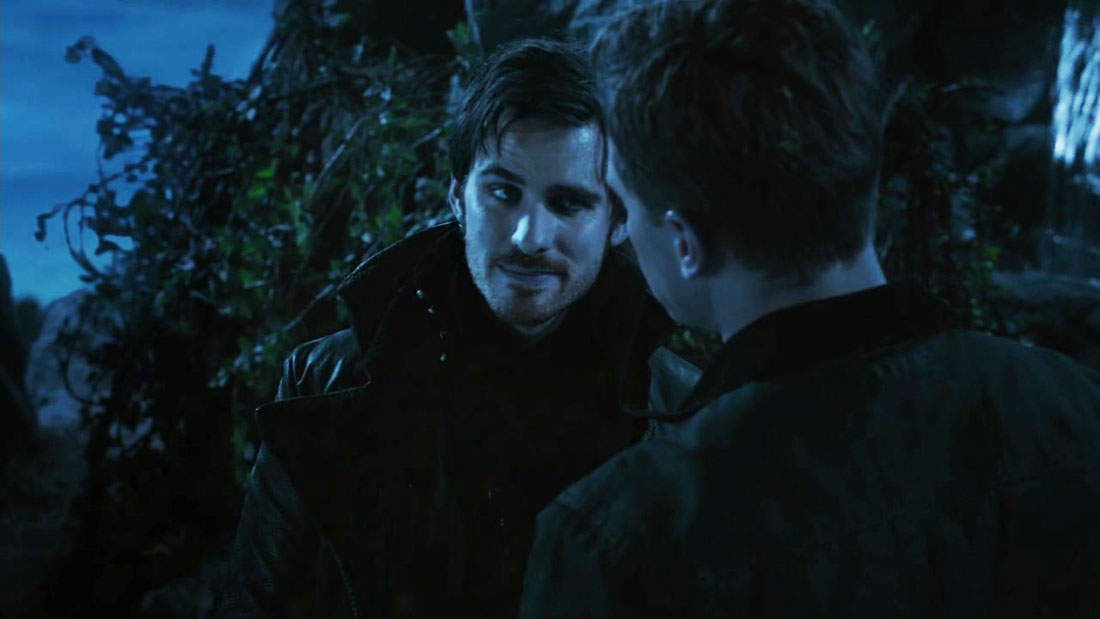 Their friendship may have had a rocky start, but when Killian takes David to Dead Man’s Peak under the ruse of searching for a sextant, they went from foes to unlikely friends. Killian knew David well enough that he had to lie about his true reason for their journey. When David collapses Killian breaks through the forest of thorns surrounding the water that will save his life, with an amusing little annoyed “Bloody Hell” before he does so. But he still does it. When he revives the prince, he reveals the truth about their trek: that he knew him well enough to know he was stubborn (honorable) and would not do anything that could be deemed as selfish, but if he drinks the water he will be cured. Of course he reveals the harsh truth about his cure- once he drinks it he can never leave Neverland. David understands and when the water miraculously works he smiles with gratitude. Of course David asks why he would do something when he would get nothing in return. Killian simply smiles, winks, and says “I didn’t do it for you, mate.” Of course part of him probably did do it for him, but David understands that Killian’s real motivation was for Emma so she would not lose her father yet. It was start of a great understanding between these two characters and another step in Killian’s  journey back to toward heroism.